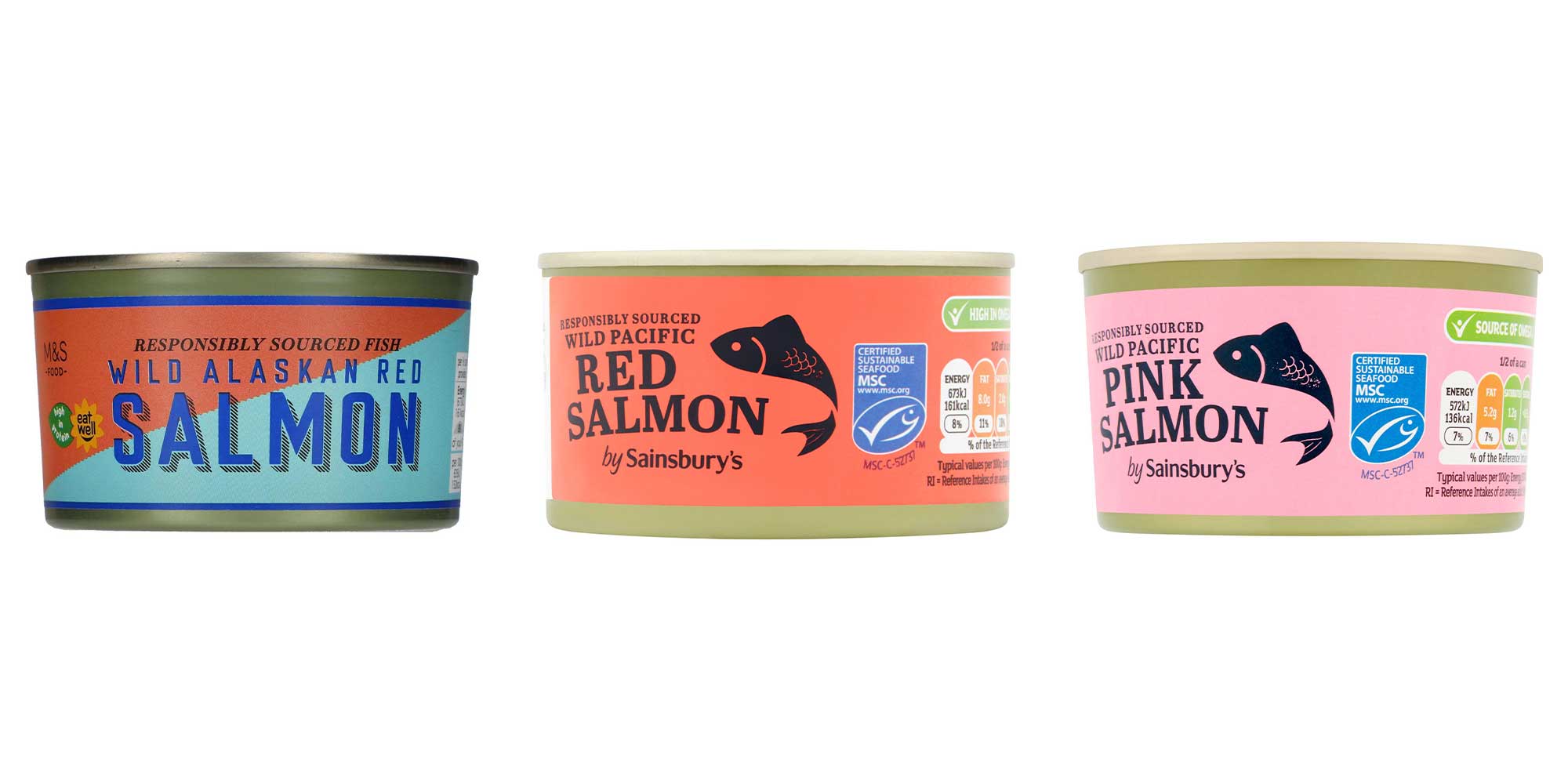 - M&S wild Alaskan red salmon, 2,000mg omega-3 per 100g (£3.65 for 213g tin, Ocado)