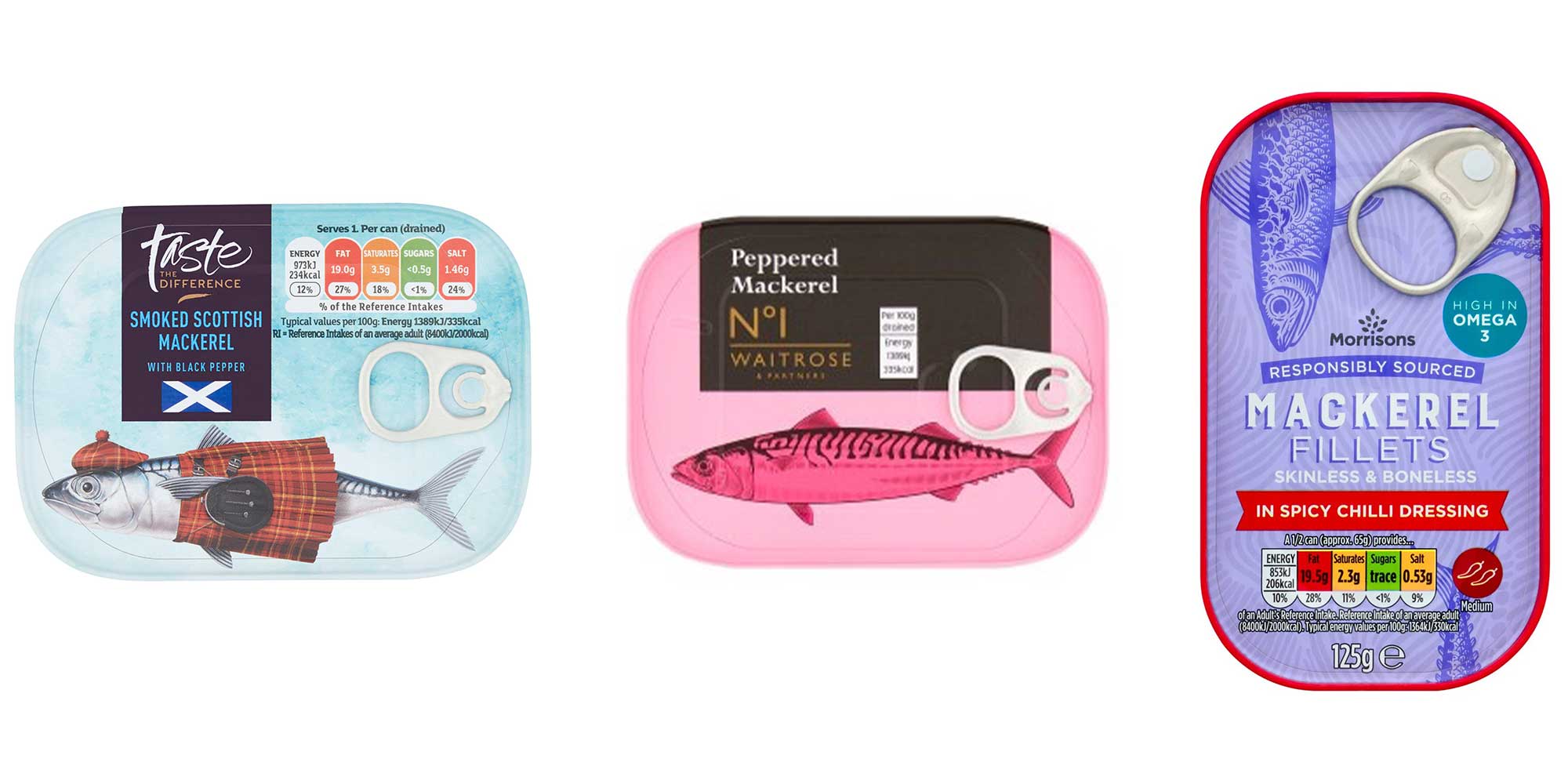 - Morrisons mackerel in spicy chilli, 3,900mg omega-3 per 100g (£1 for 125g tin, Morrisons)