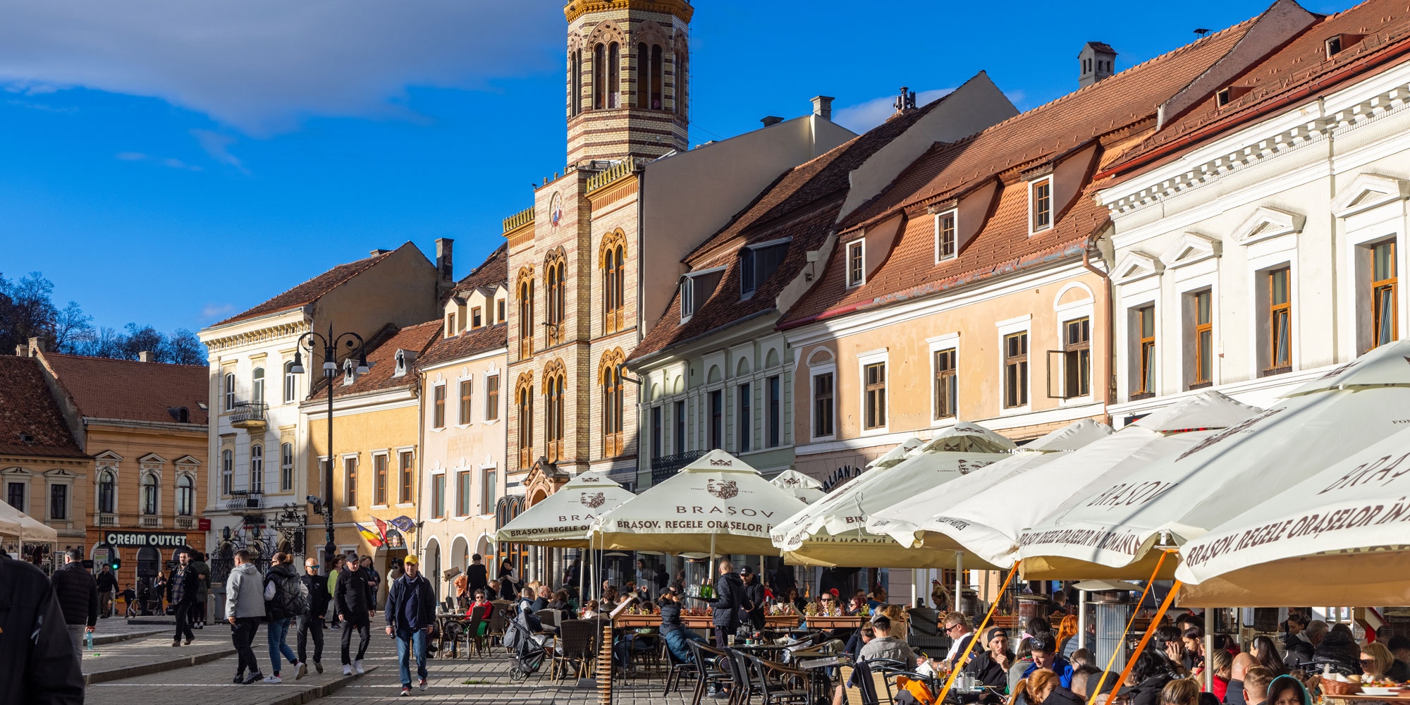 I arrive into Brasov old town on a sultry evening. On Piata Sfatului, the main square, couples amble hand in hand and families chat on benches among Baroque townhouses. A balloon-seller is engulfed in a swaying cloud of Peppa Pigs and dolphins to the delight of a toddler. In backstreets, restaurant tables spill out from the homes of 18th-century merchants. The sky blushes pink, pastel facades ripen and Brasov blurs into romantic soft-focus.
