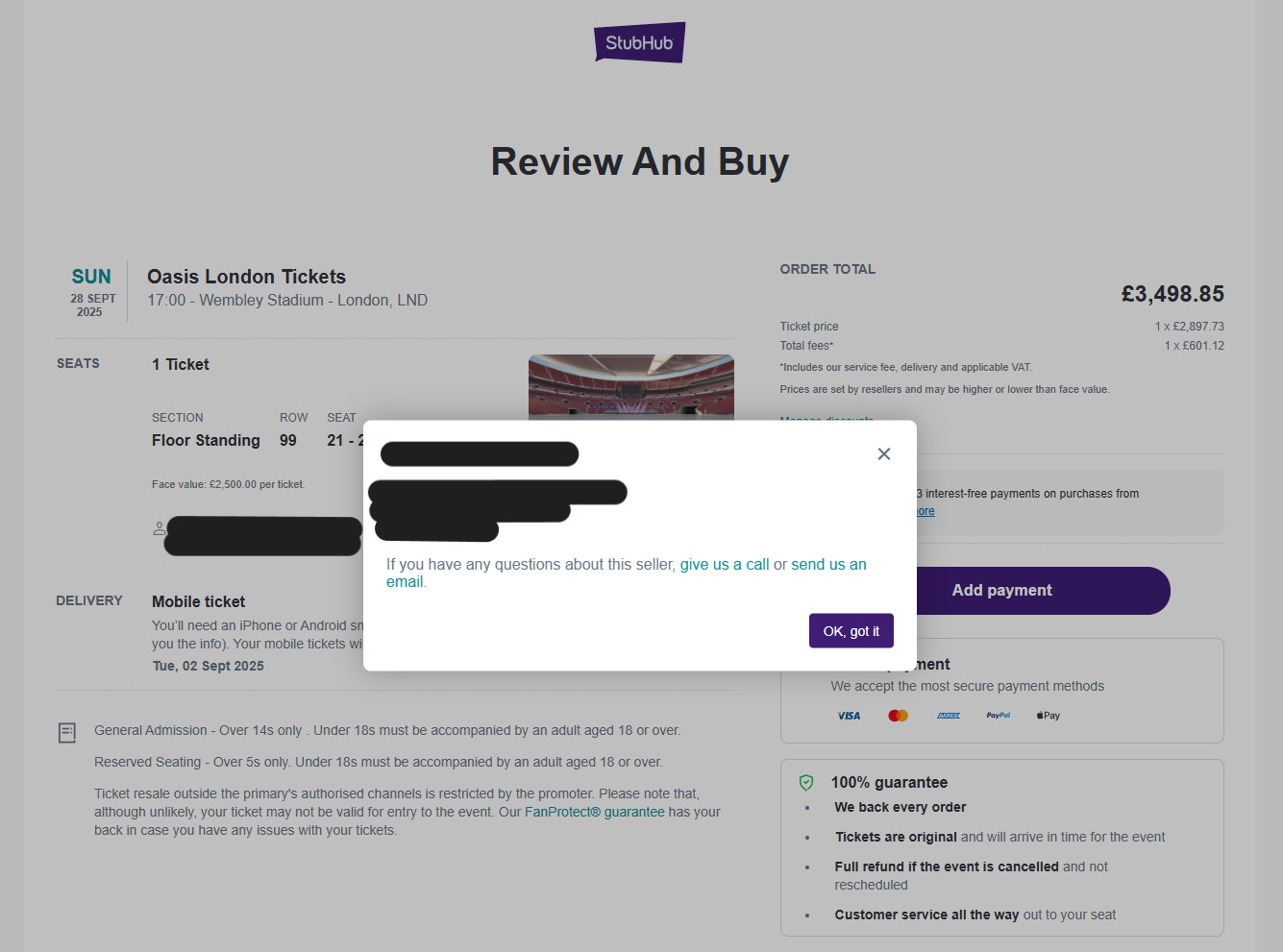 Stubhub International told us it is committed to providing fans with a safe, trusted and transparent marketplace to buy and sell tickets, and is fully compliant with UK regulations.